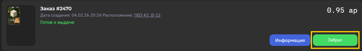 Забрав заказ из ПВЗ вы обязаны подтвердить факт его получения на сайте.