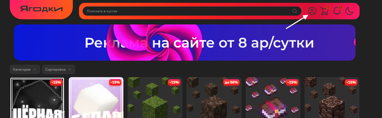 На странице профиля нажмите на вкладку «Ягодки Селлер»