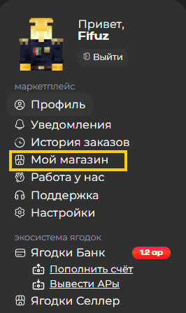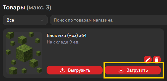 Пополнение товара осуществляется через вкладку «Мой магазин» <i class="fa-right">:right:</i> «Товары».
